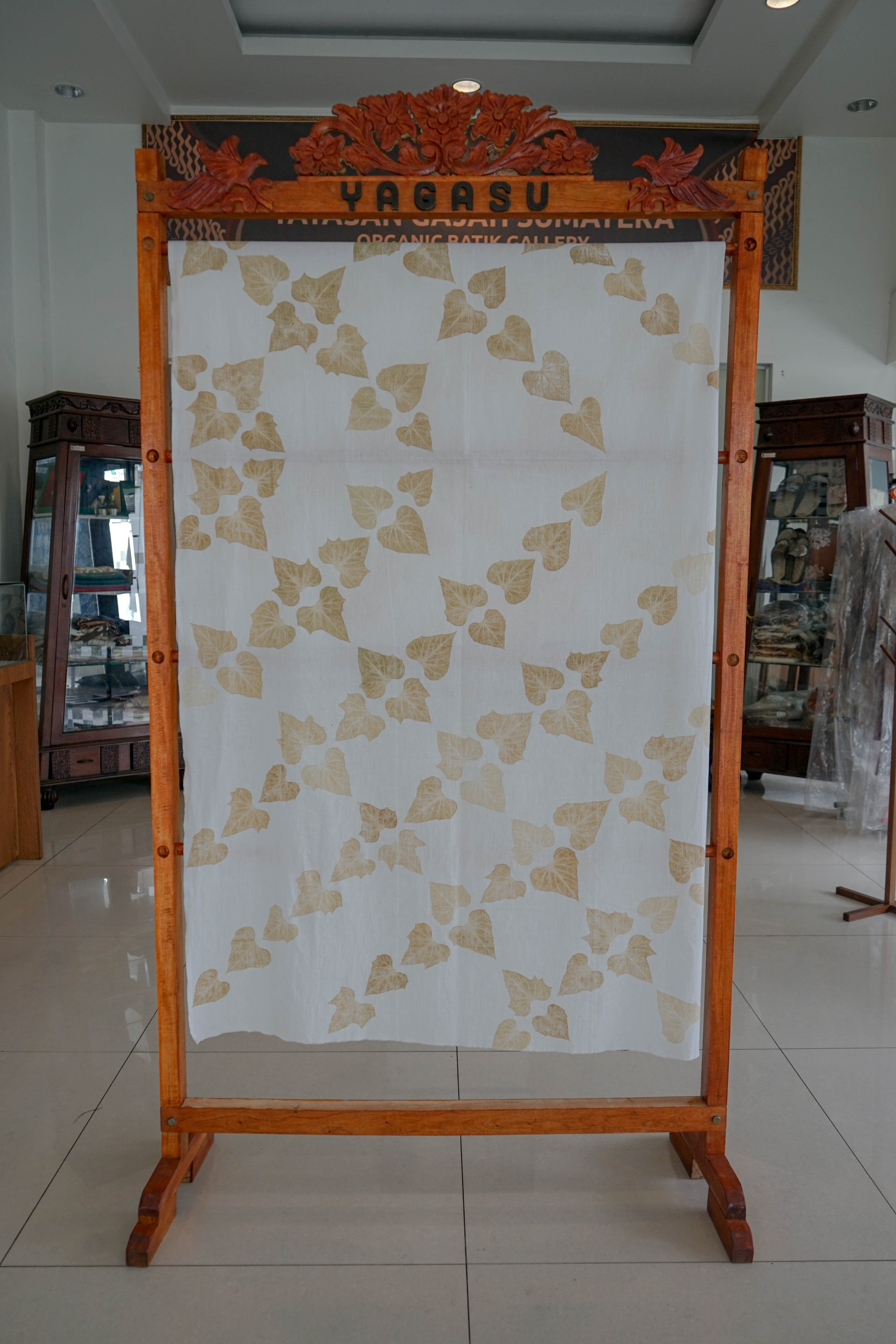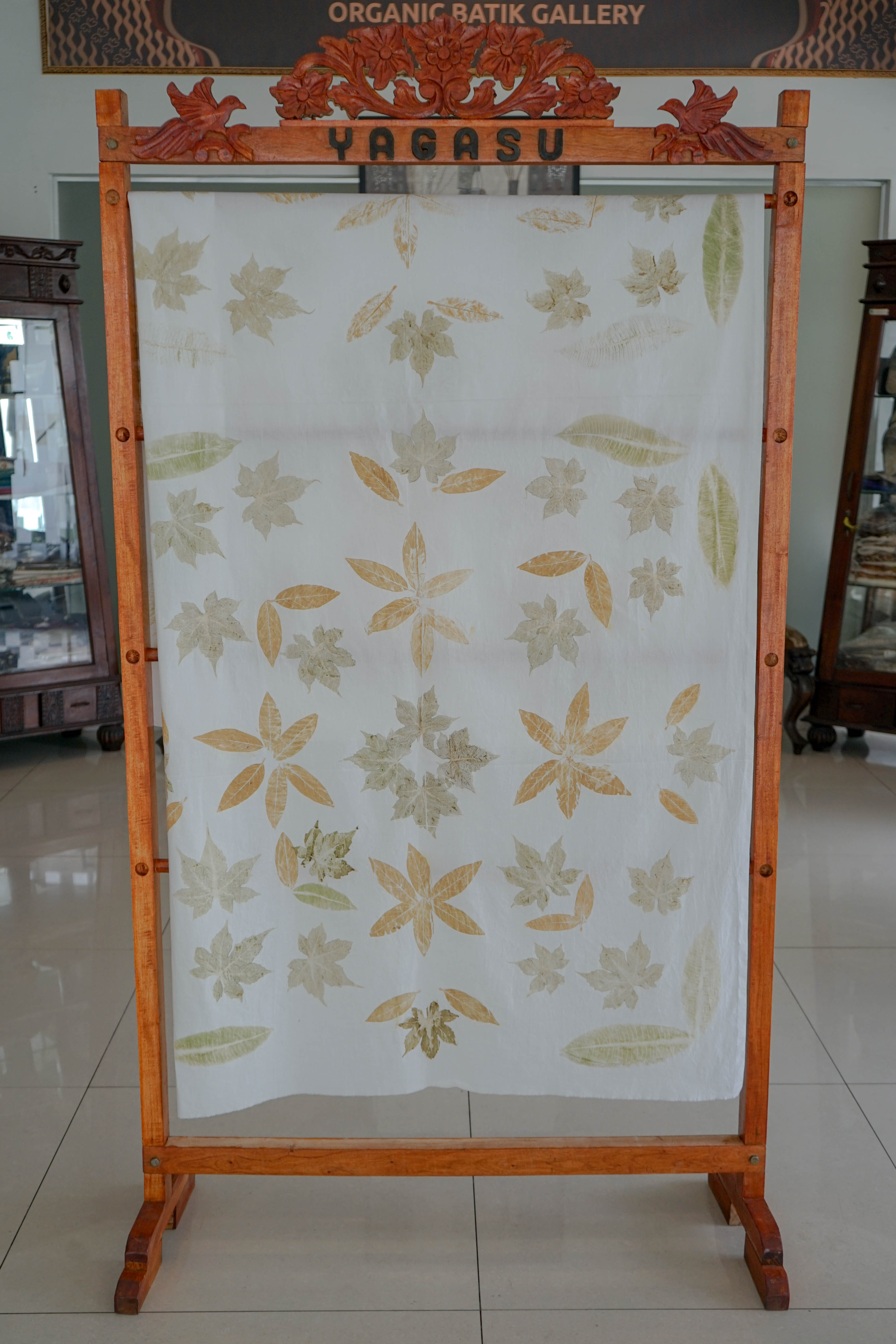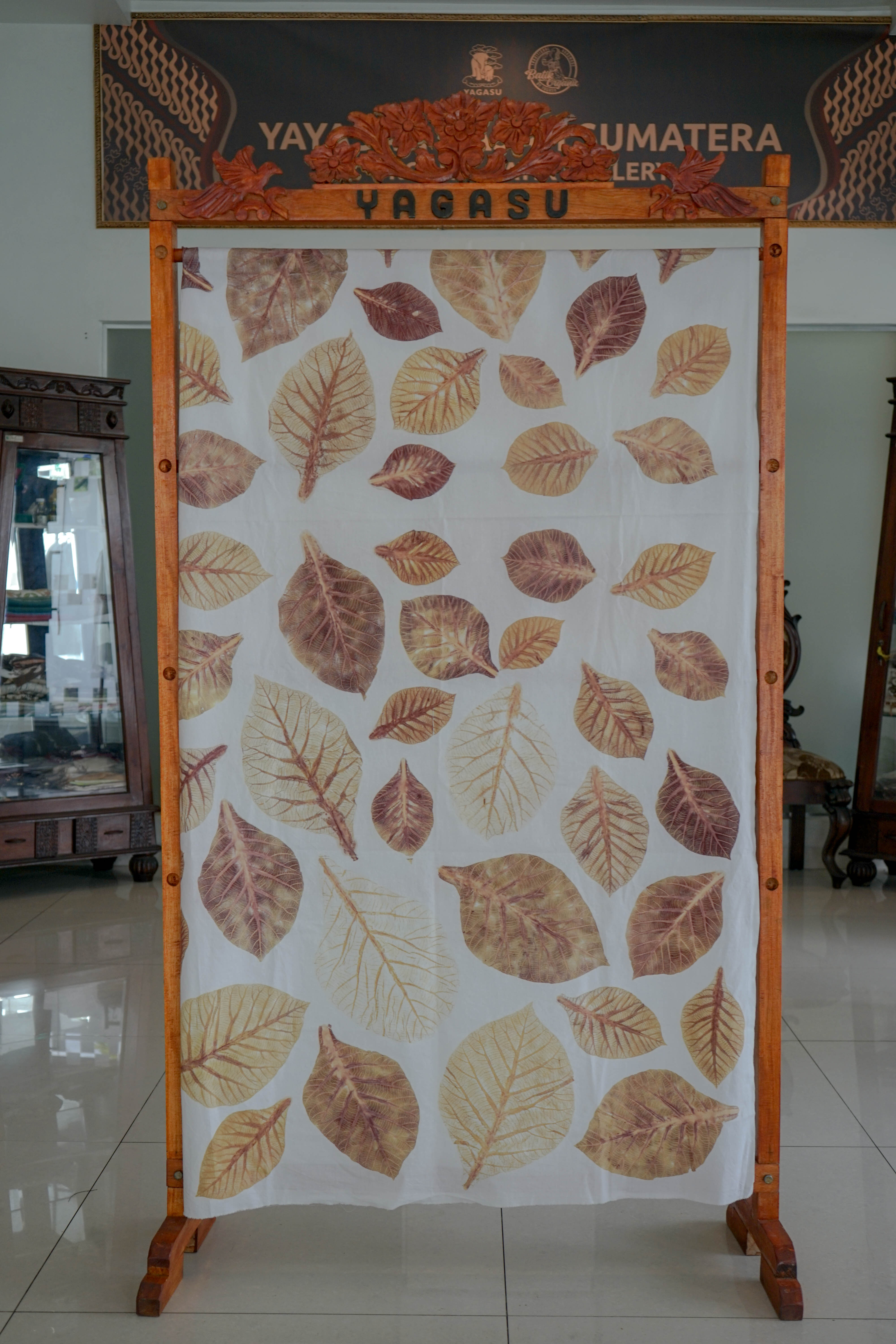 *Kain Ecoprint yang dibuat dengan pewarna alami dari ranting pohon mangrove, dan motif dari bahan-bahan alami.